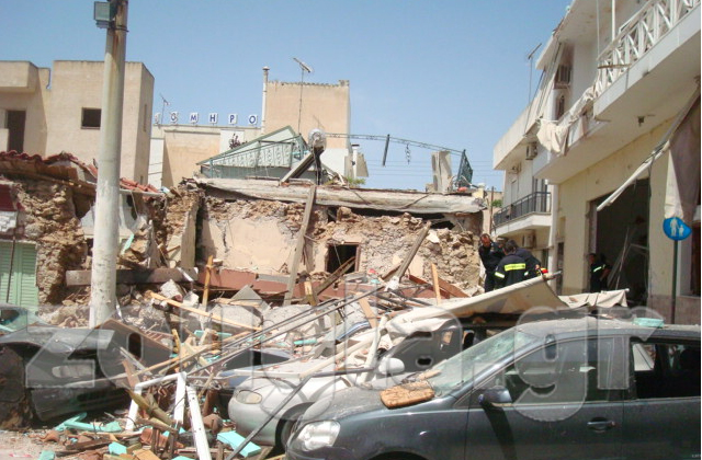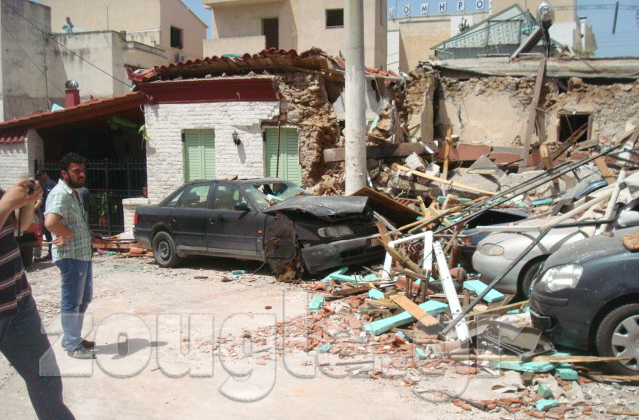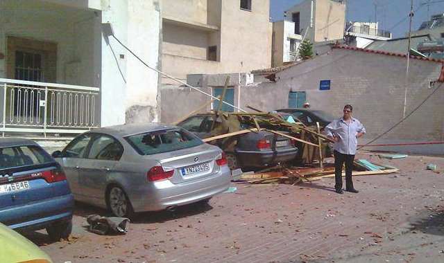 (Αυτοκίνητα καταπλακώθηκαν από τα μπάζα)