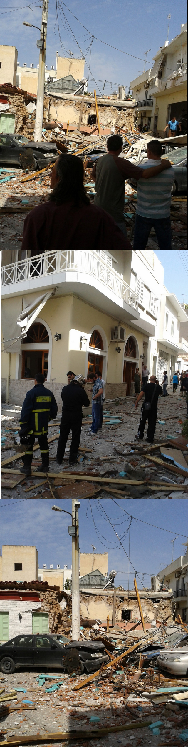 Συγκλονίζει η μαρτυρία του κ. Γιώργου, το σπίτι του οποίου βρίσκεται σε απόσταση πέντε μέτρων από το σημείο της έκρηξης: «Ήμουν ξύπνιος μέσα στο σπίτι, μαζί με τα εγγόνια μου και την νύφη μου που κοιμόντουσαν, ώσπου άκουσα θόρυβο και πετάχτηκα. Τα μωρά ξύπνησαν αλαφιασμένα. Ο εσωτερικός χώρος γέμισε καπνούς και σκόνη. Τα τζάμια έσπασαν και η κεντρική πόρτα φράκαρε με αποτέλεσμα να βγω έξω με δυσκολία. Το σπίτι μου έχει υποστεί σοβαρές υλικές ζημιές. Δεν έχω παράθυρα και πόρτες, το σπίτι μου έγινε καλοκαιρινό. Κανείς δεν μπορεί να μας πει με βεβαιότητα τι ακριβώς συνέβη».