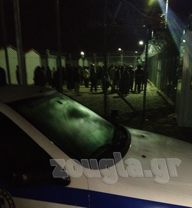 Μερικά λεπτά μετά τις 21:30 το βράδυ, μια μικρή ομάδα μεταναστών άρχισε, σύμφωνα με αστυνομικές «πηγές», να πλησιάζει τα σιδερένια κιγκλιδώματα που περιφράζουν την περιοχή των λυόμενων στα οποία κρατούνται, φωνάζοντας κι άλλους κρατουμένους να έρθουν προς το μέρος τους.