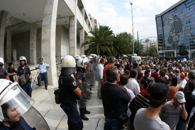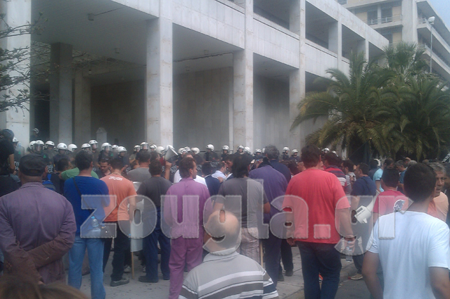 Νωρίτερα, ο βουλευτής του ΣΥΡΙΖΑ, Δ. Στρατούλης, εξήλθε από το Μέγαρο και ανακοίνωσε ότι οι εργαζόμενοι στα ναυπηγεία θα μεταφερθούν στην Ευελπίδων. Ωστόσο, η ΕΛ.ΑΣ. τονίζει ότι οι προσαγωγές δεν μετατράπηκαν σε συλλήψεις και πως δύο εισαγγελείς που βρίσκονται στη Λ. Αλεξάνδρας θα αποφανθούν για το αν οι 106 διαδηλωτές θα οδηγηθούν στην Ευελπίδων.