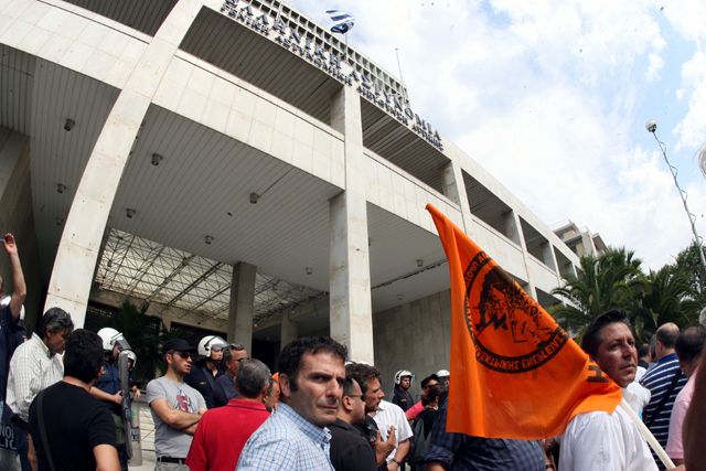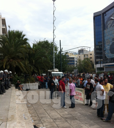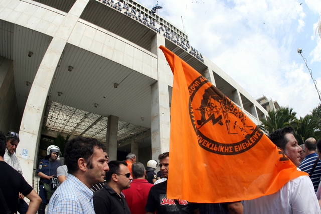 Έξω από τη ΓΑΔΑ βρίσκονται τόσο ο πρόεδρος της ΓΣΕΕ, Γιάννης Παναγόπουλος, όσο και ο πρόεδρος της ΓΕΝΟΠ- ΔΕΗ, Νίκος Φωτόπουλος, αλλά και βουλευτές.