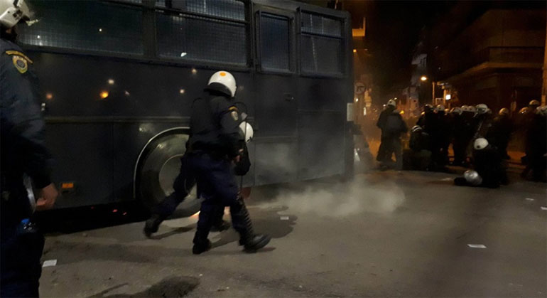 Οι αστυνομικοί έκαναν χρήση χειροβομβίδων κρότου λάμψης, για να απωθήσουν τους νεαρούς και προχώρησαν σε τουλάχιστον τέσσερις προσαγωγές.