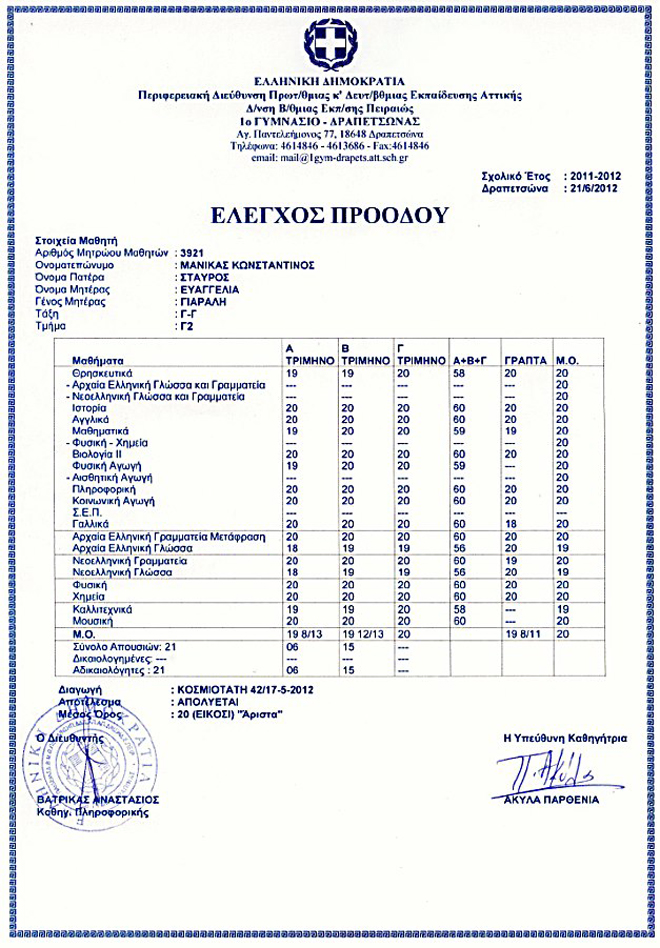 ΥΓ. όχι από ματαιοδοξία αλλά για να στερήσω από κάποιους το γελοίο επιχείρημα πως «απλά θέλω να χάσω μαθήματα» , παραθέτω τους βαθμούς μου…»