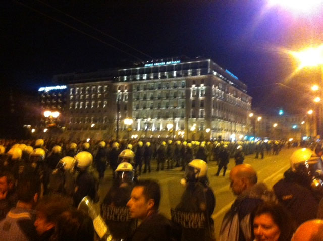 Μετά τις 21.00 το βράδυ το μεγαλύτερο μέρος του πλήθους αποχώρησε από τη συγκέντρωση και η Λεωφ. Αμαλίας δόθηκε και πάλι στην κυκλοφορία ενώ στην περιοχή παρέμεναν συγκεντρωμένες αστυνομικές δυνάμεις.