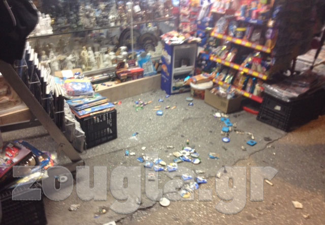 (Ζημιές στο περίπτερο κατά τη βίαιη σύλληψη)