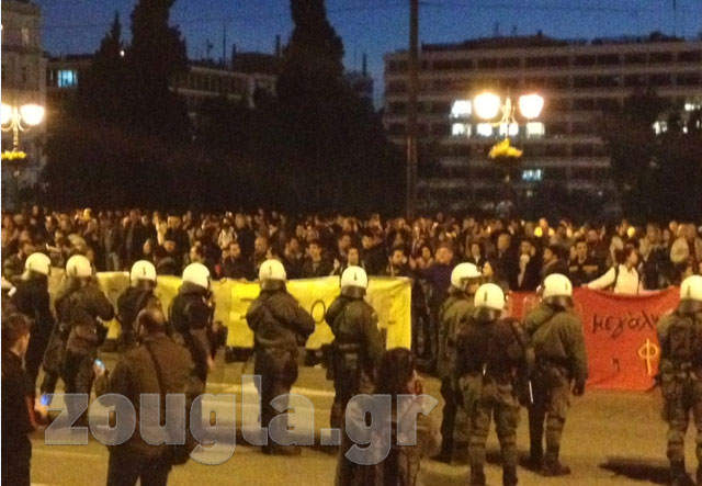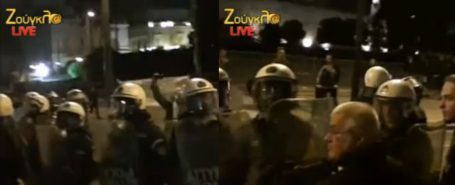 (Σε κλοιό των ΜΑΤ οι διαδηλωτές)