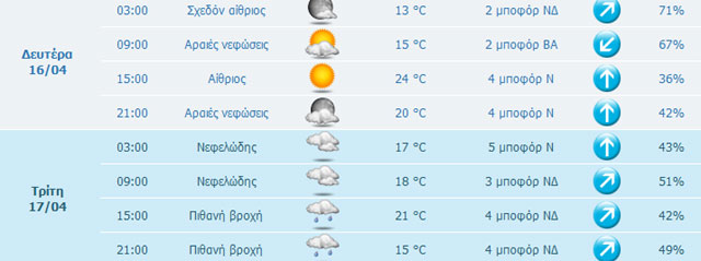 Δείτε αναλυτικά τις θερμοκρασίες και τις καιρικές συνθήκες σε όλη την Ελλάδα για το επόμενο διήμερο: