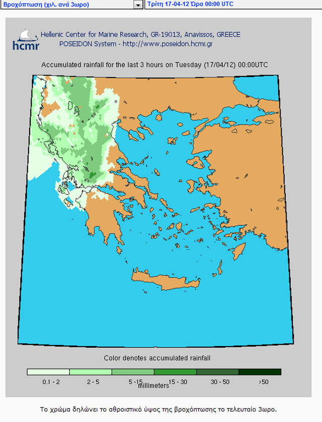 Υδατογράφημα με τις περιοχές, όπου θα βρέξει από το πρωί της Δευτέρας: