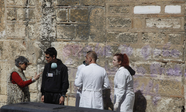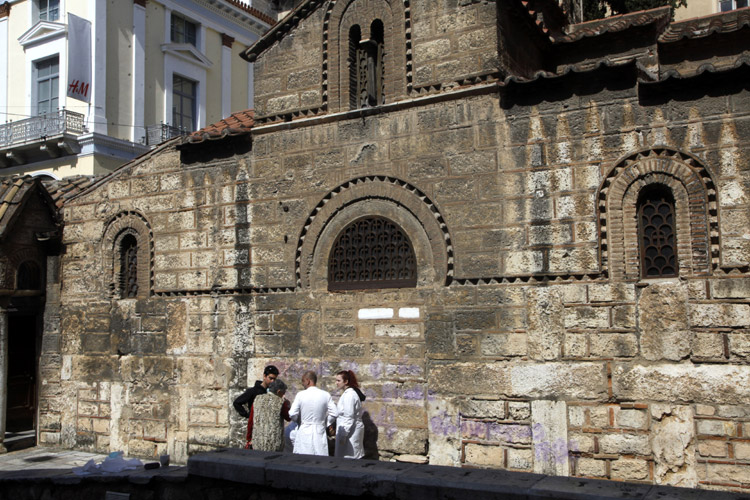 Ειδικά συνεργεία καθαρισμού μετέβησαν σήμερα στην εκκλησία της Καπνικαρέας προκειμένου να καθαρίσουν το κτήριο από συνθήματα που έγραψαν χθες το βράδυ διαδηλωτές.