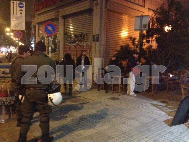 (Αστυνομικοί έξω από το διαμέρισμα στα Εξάρχεια)
