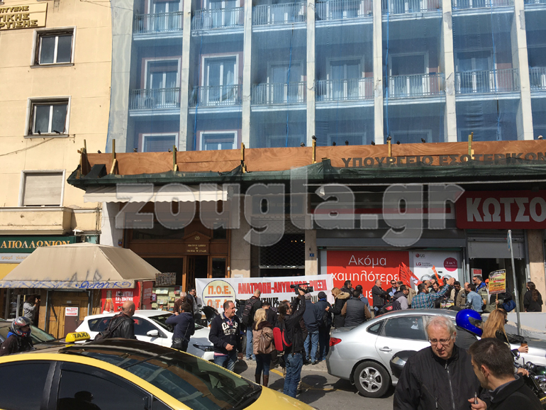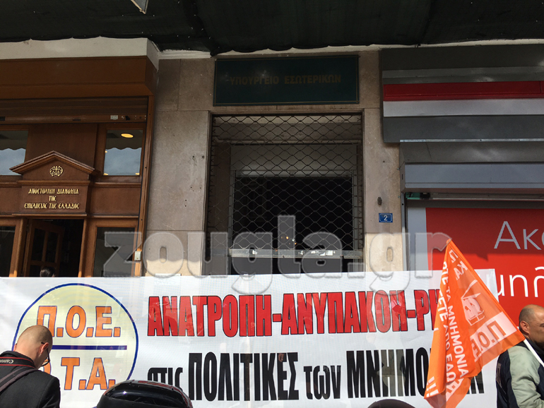 Παράσταση διαμαρτυρίας στην είσοδο του Υπουργείου Εσωτερικών πραγματοποίησαν το πρωί της Δευτέρας εργαζόμενοι στην ΠΟΕ-ΟΤΑ.