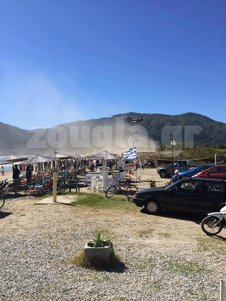 Δείτε φωτογραφίες με ελικόπτερα, τύπου Chinook, να πετούν πάνω από παραλία με λουόμενους, πολύ κοντά σε σπίτια και στύλους της ΔΕΗ…