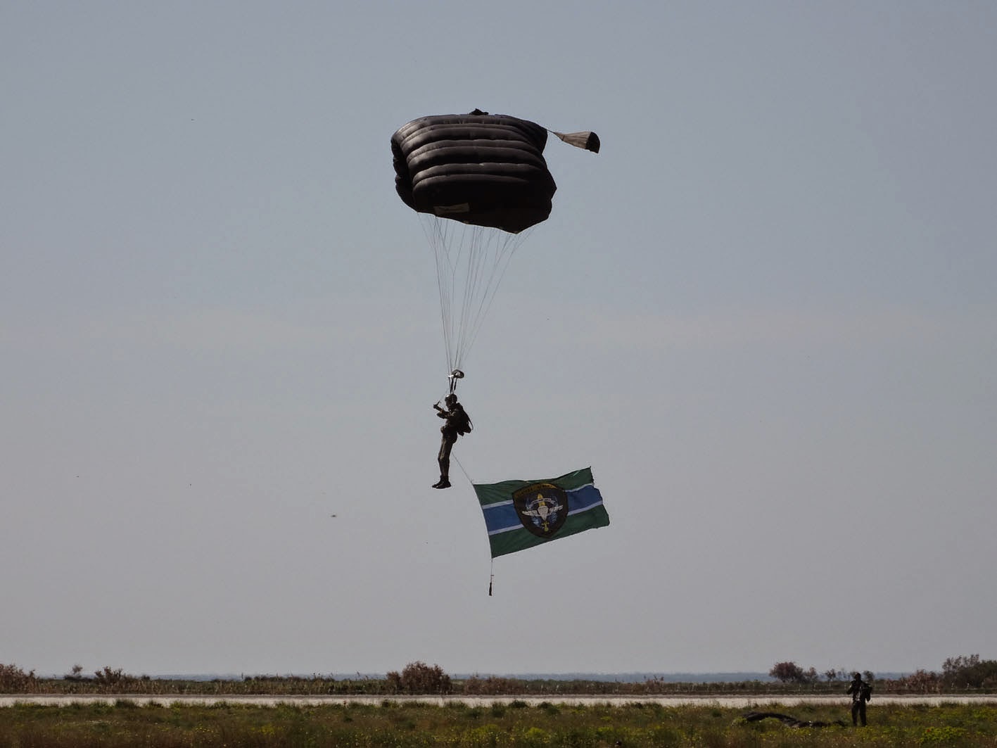 Επίδειξη αλμάτων από επίλεκτη μονάδα ειδικών δυνάμεων αλεξιπτωτιστών, πραγματοποιήθηκε την Τρίτη στο αεροδρόμιο Αλεξανδρούπολης «Δημόκριτος».