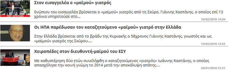 Νέα 48ωρη προθεσμία ζήτησε και πήρε από τον Ανακριτή Χαλκίδας, ο ψευτογιατρός της Σκύρου, Γιάννης Καστάνης, σε βάρος του οποίου εκκρεμούν σωρεία καταδικαστικών αποφάσεων.
