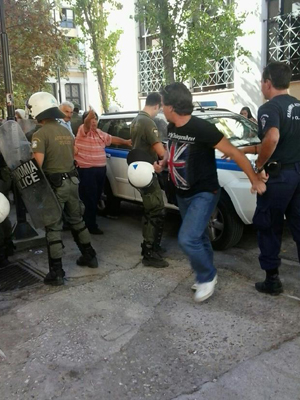 Απαγγείλαμε κατηγορίες στην αστυνομία και θέλουμε να δούμε τον άνθρωπο υπόλογο για τις πράξεις του! Την Παρασκευή ζήτησε και πήρε αναβολή με τη δικαιολογία ότι ήταν τρομοκρατημένος από τον συγκεντρωμένο κόσμο! Δεν τον βλέπουμε εδώ σήμερα, αλλά πρέπει να καταστεί υπεύθυνος για ότι έκανε! Να ξέρετε ότι άλλα είπε σε εμάς τη στιγμή του περιστατικού κι άλλα στην αστυνομία, στην οποία είπε ότι δεν έδωσε αυτός την εντολή κι ότι ο εργάτης του το έκανε από μόνος του!»