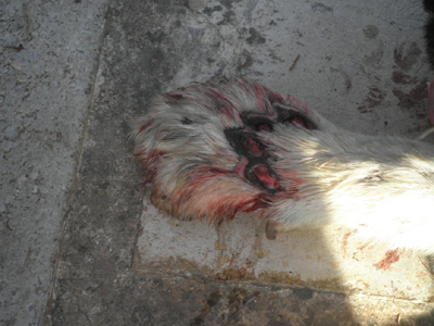 Εμείς του απαντήσαμε ότι όσο κακό και να του έκανε ο σκύλος, αυτός δεν είναι τρόπος να φερόμαστε στα ζώα, ότι αυτό είναι βασανισμός. Τότε προσπάθησε να προπηλακίσει μια από τις γυναίκες που βρίσκονταν στο σημείο και ένας άνδρας τον σταμάτησε. Τότε έφτασε η αστυνομία. Το σκυλί ήταν σε άθλια κατάσταση, αιμορραγούσε, τα κόκκαλα του είχαν βγει έξω ενώ το δέρμα από τα πόδια του είχε εξαλειφθεί τελείως. Τώρα νοσηλεύεται.