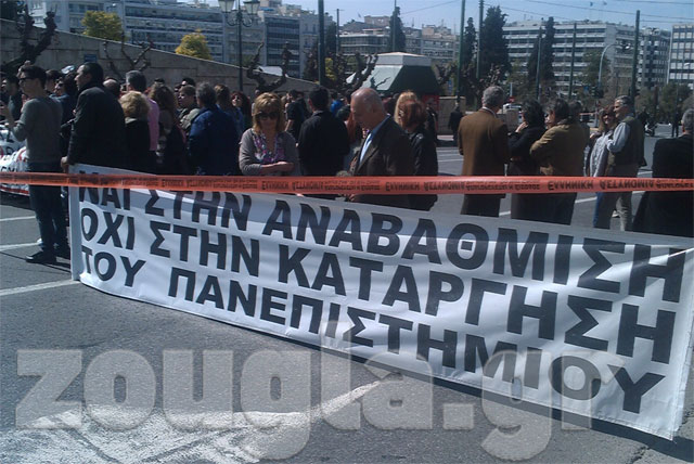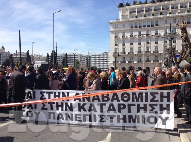 Συγκέντρωση διαμαρτυρίας για την κατάργηση του ΤΕΙ Ιονίων Νήσων πραγματοποιούν έξω από τη Βουλή καθηγητές, φοιτητές, κάτοικοι της Ζακύνθου, ο αντιπεριφερειάρχης Διον. Μυλωνάς καθώς και οι μητροπολίτες Ζακύνθου και Δωδώνης.