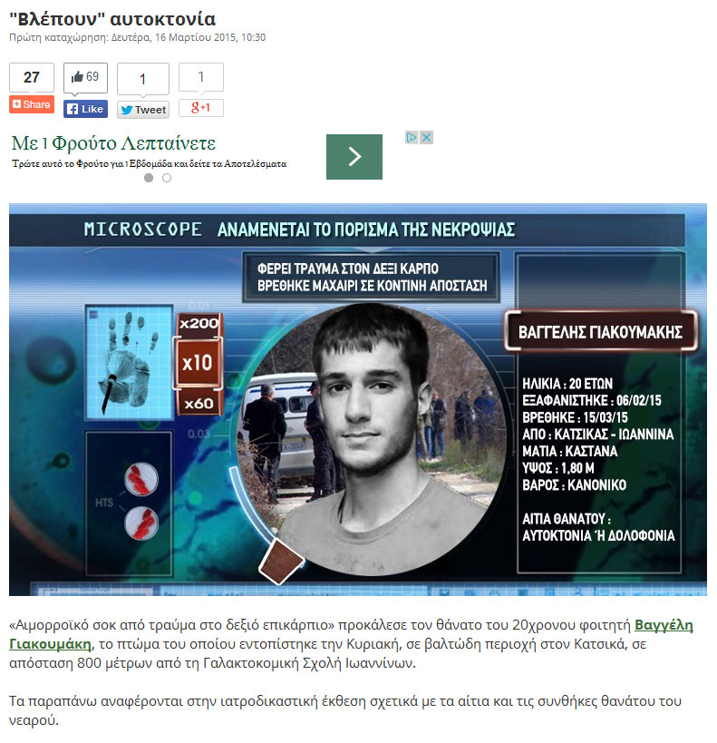 Ταυτοποιήθηκαν από τη Δίωξη Ηλεκτρονικού Εγκλήματος τα άτομα που βρίσκονται πίσω από τις ηλεκτρονικές ύβρεις προς τον Βαγγέλη Γιακουμάκη, τον 20χρονο φοιτητή ο οποίος βρέθηκε νεκρός στις όχθες της λίμνης Παμβώτιδας, κοντά στη Γαλακτοκομική Σχολή.