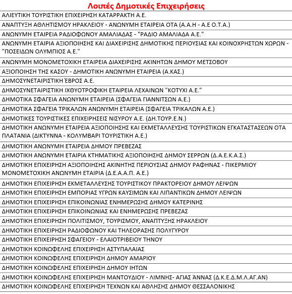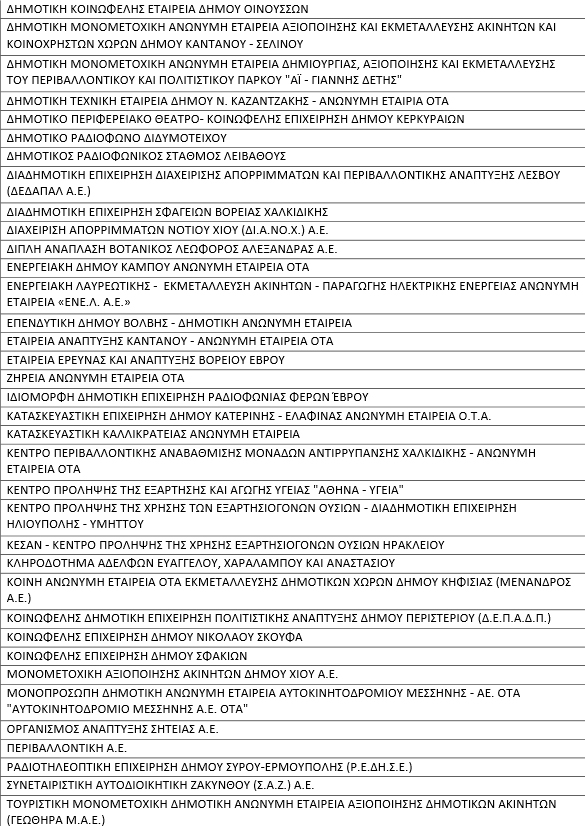 Αναλυτικά η λίστα με τους 133 φορείς: