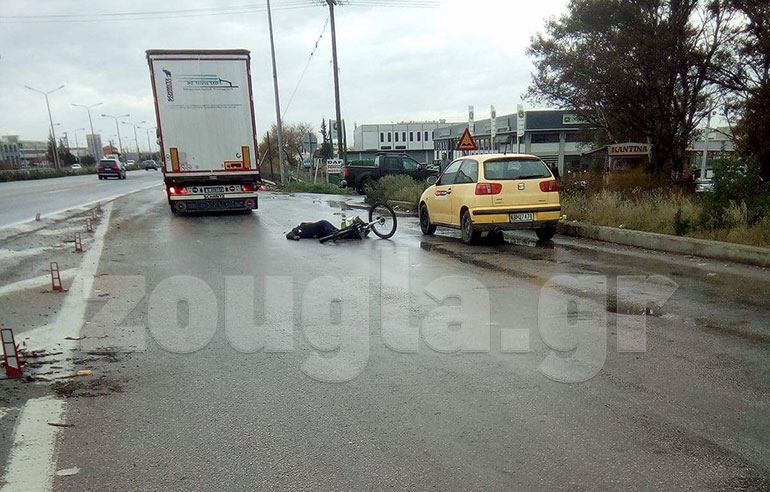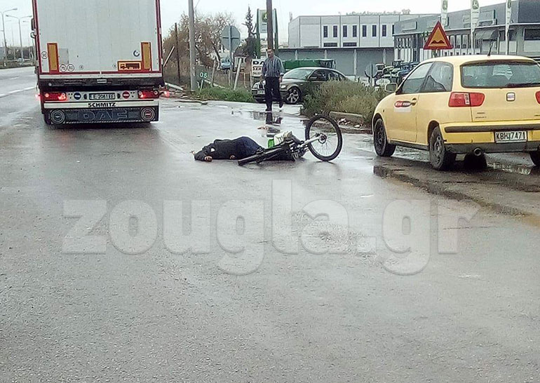 Ένας αλλοδαπός ποδηλάτης, περίπου 40 ετών, σύμφωνα με αυτόπτη μάρτυρα, έχασε τον έλεγχο του δίκυκλου και έπεσε στις πίσω ρόδες φορτηγού οχήματος, που εκείνη τη στιγμή είχε ξεκινήσει να κινείται, από τον παράδρομο της Εθνικής Οδού. Ο άτυχος ποδηλάτης αποκεφαλίστηκε.