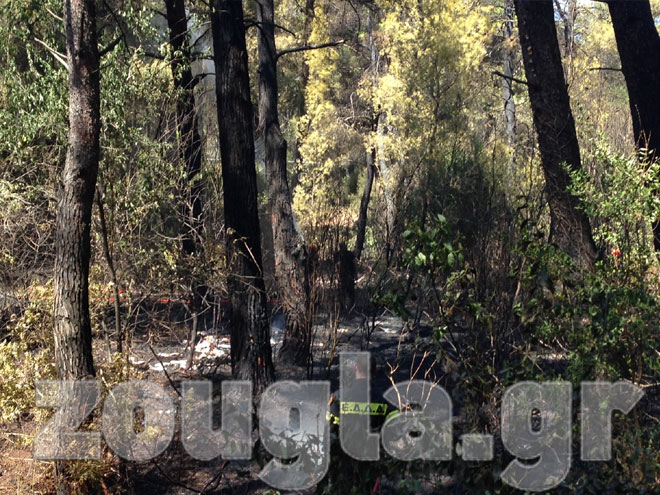 Στην περιοχή επιχείρησαν 20 άνδρες της Π.Υ. με 10 οχήματα και σύμφωνα με πληροφορίες κάηκαν 2 στρέμματα.
