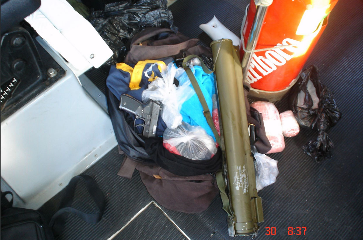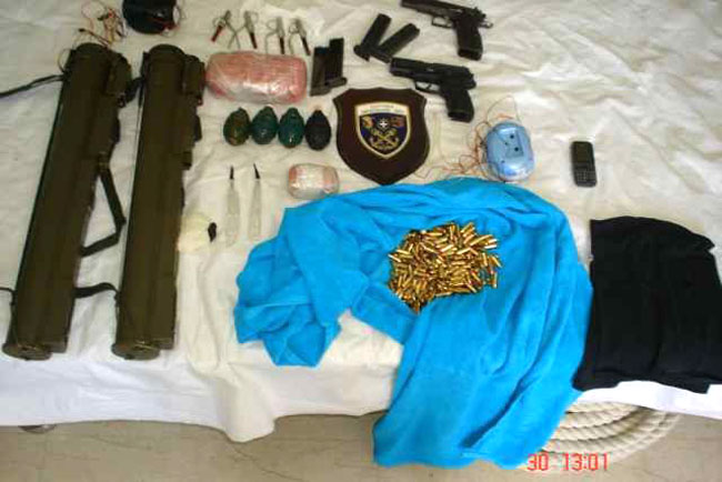 (Aντιαρματικοί όλμοι, τέσσερις χειροβομβίδες, δύο πιστόλια, σφαίρες και εκρηκτικά)