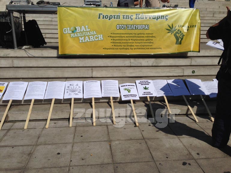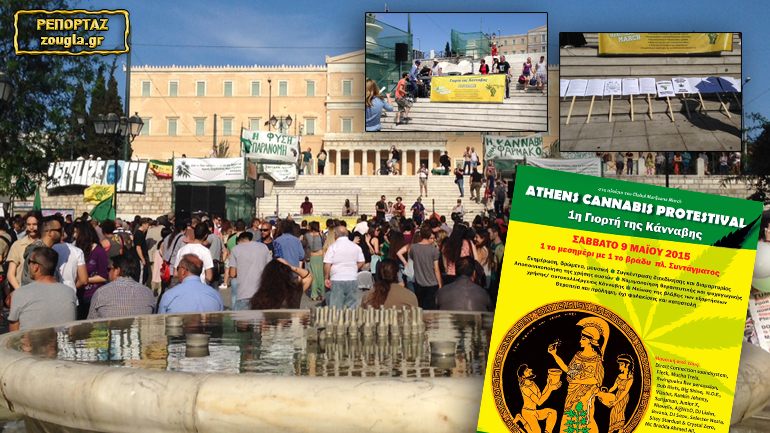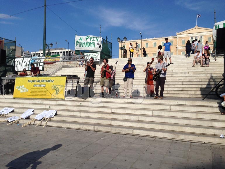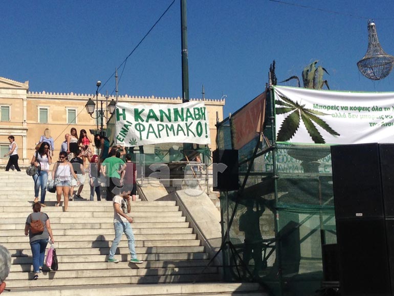 Πλήθος κόσμου στην πλατεία Συντάγματος ενημερώνεται για τις θέσεις των φορέων και των κινημάτων που τίθενται υπέρ της νομιμοποίησης της χρήσης, ενώ παράλληλα πραγματοποιούνται συναυλίες και εκδηλώσεις.