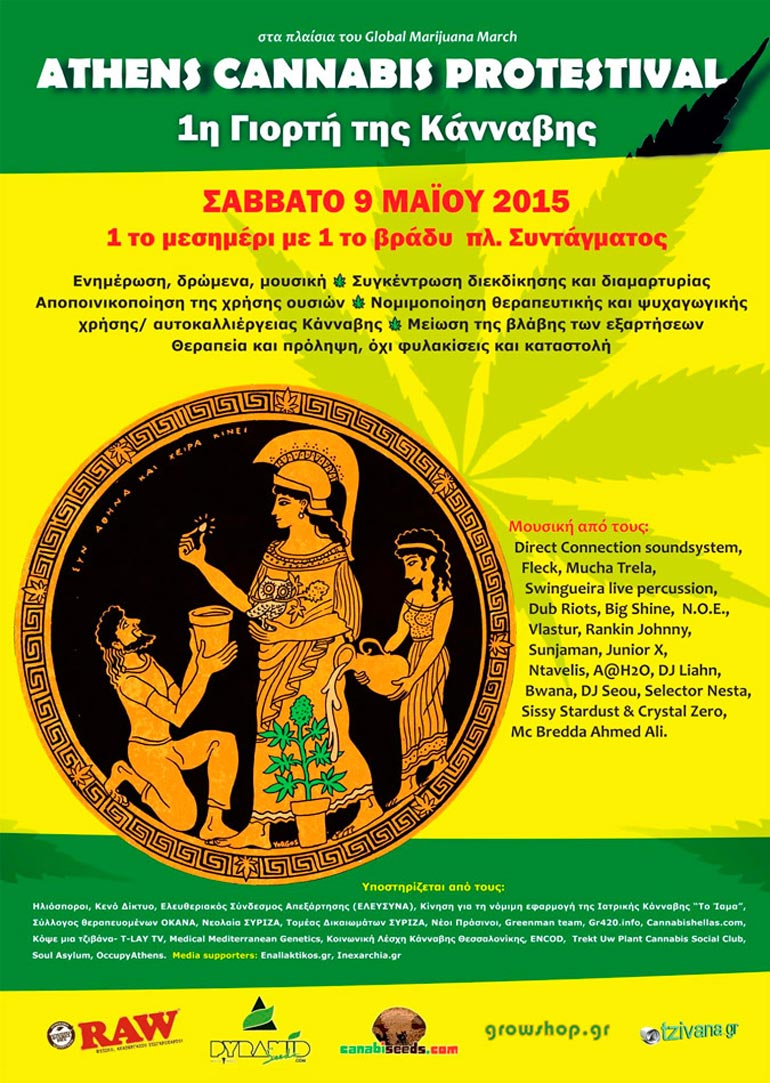 Η 1η Γιορτή της Κάνναβης θα είναι μια συγκέντρωση διεκδίκησης και διαμαρτυρίας, που θα πραγματοποιηθεί το Σάββατο 9 Μαΐου, στις 3 το μεσημέρι με 1 το βράδυ, στην πλατεία Συντάγματος, στα πλαίσια της παγκόσμιας ημέρας δράσης Global Marijuana March.