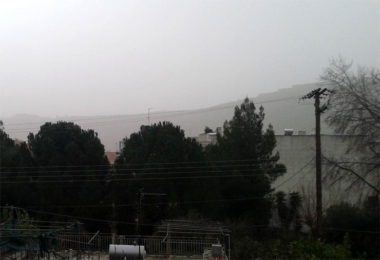 Το Παλαμήδι εξαφανίστηκε από την αφρικανική σκόνη που «έπνιξε» το Ναύπλιο. Η σκόνη που μετέφεραν οι ισχυροί νοτιάδες έκαναν αποπνικτική την ατμόσφαιρα, περιορίζοντας σημαντικά την ορατότητα.