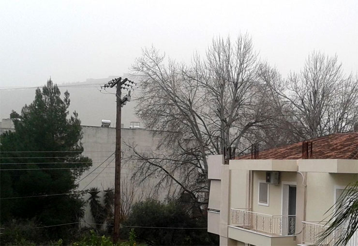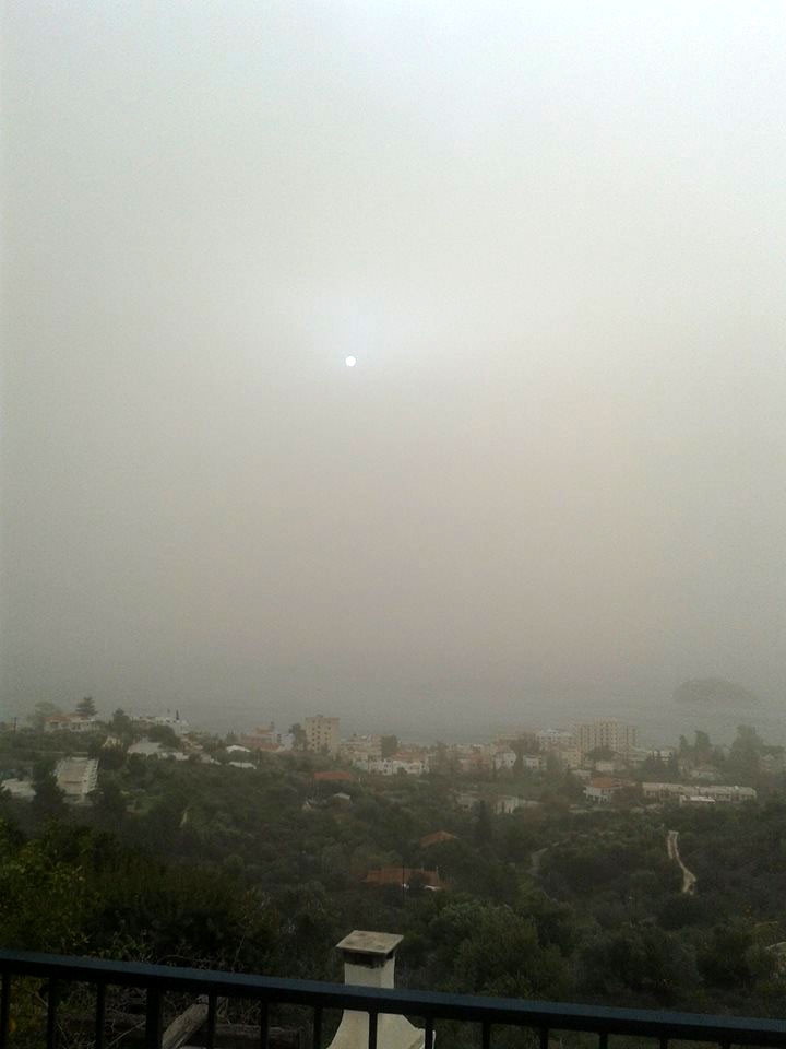 Χαρακτηριστικές είναι και οι φωτογραφίες από το Τολό Αργολίδας. Η μεταφορά αφρικανικής σκόνης από τους ισχυρούς νοτιάδες είχε ως αποτέλεσμα να κρυφτεί ο ήλιος.