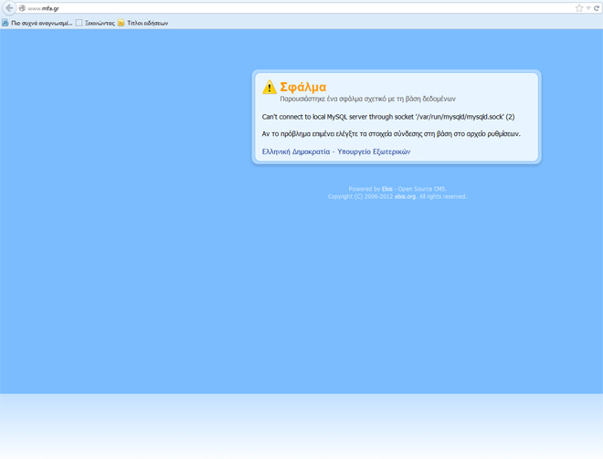 Πράγματι, και η σελίδα του υπουργείου Εξωτερικών (mfa.gr) και της ΕΛ.ΑΣ. είναι εκτός λειτουργίας.