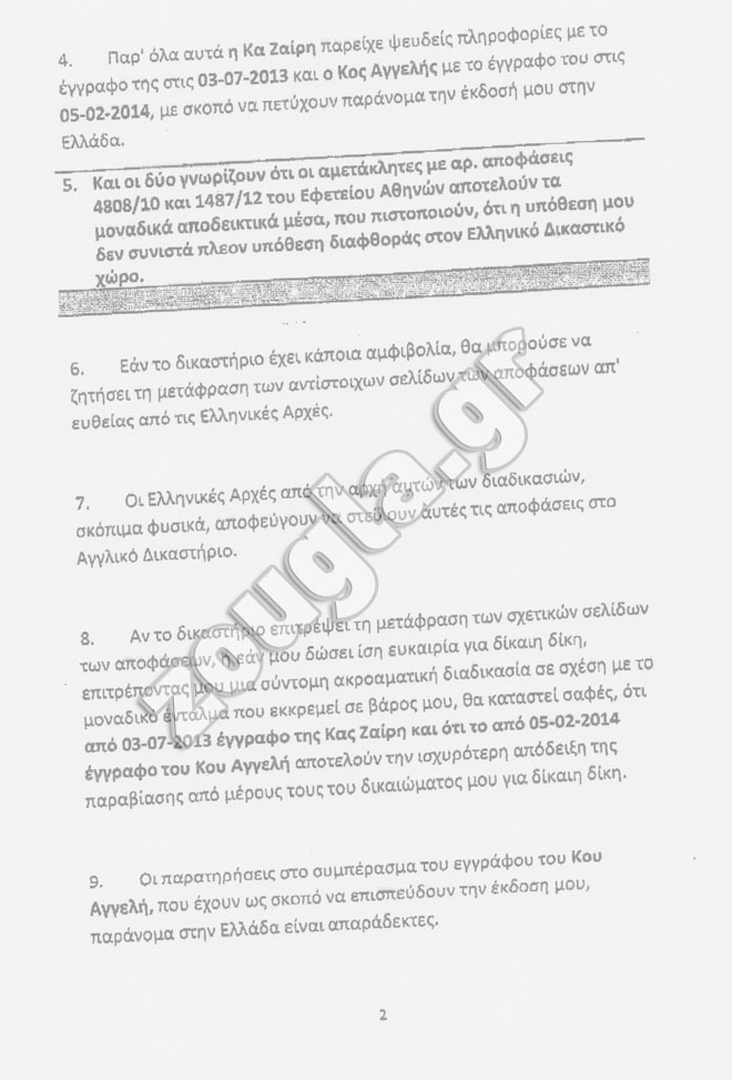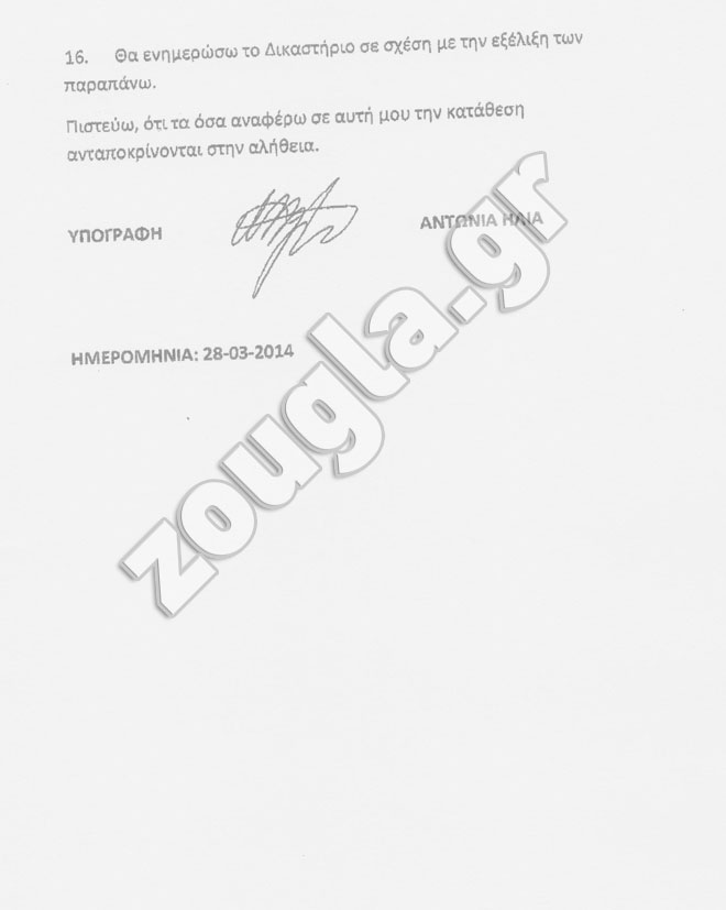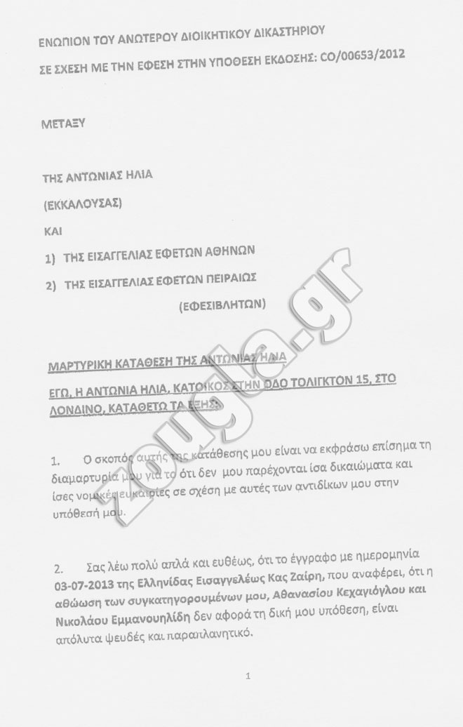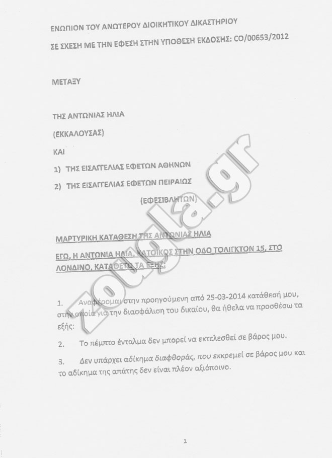 Παράλληλα, παρακάτω παρατίθενται και οι καταθέσεις που έδωσε η κ. Ηλία στο αγγλικό δικαστήριο.