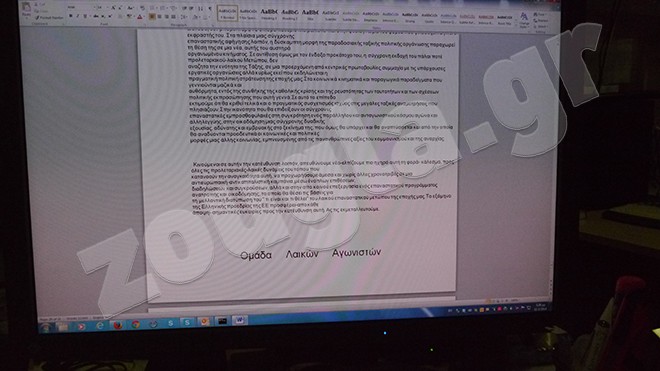 Με προκήρυξη που έφθασε στα χέρια του zougla.gr, η οργάνωση «Ομάδα Λαϊκών Αγωνιστών» ανέλαβε την ευθύνη για σειρά επιθέσεων.