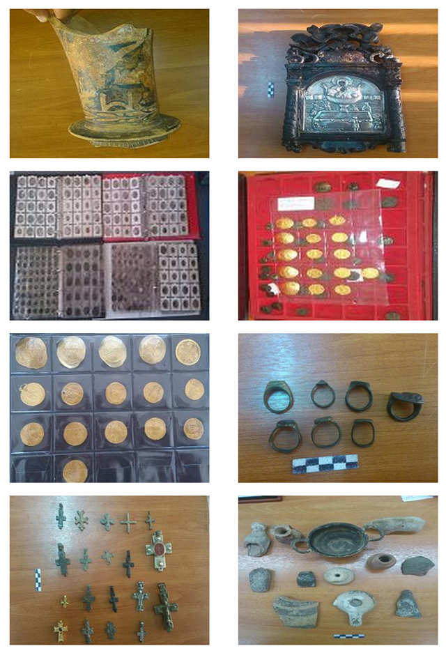Στη δημοσιότητα δόθηκαν οι φωτογραφίες των κατασχεθέντων ευρημάτων από τη… συλλογή ενός 57χρονου αρχαιοκάπηλου που συνελήφθη χθες το μεσημέρι στην Αργυρούπολη, από αστυνομικούς του Τμήματος Πολιτιστικής Κληρονομιάς και Αρχαιοτήτων της Διεύθυνσης Ασφάλειας Αττικής.
