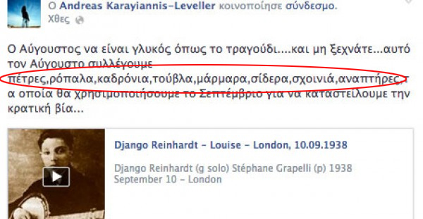 Ο Ανδρέας Καραγιάννης κάλεσε μέσω μηνύματος στο Facebook τον κόσμο σε… αντάρτικο πόλης.