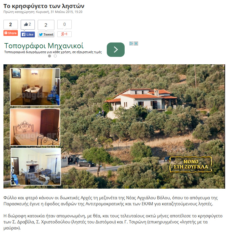 Το διώροφο κτήριο βρισκόταν σε απομονωμένη περιοχή και εκτιμάται πως τους τελευταίους οκτώ μήνες αποτέλεσε το κρησφύγετο των Σ. Δραβίλα, Σ. Χριστοδούλου (ληστές του Διστόμου) και Γ. Τσιρώνη (επικηρυγμένος «ληστής με τα μαύρα»).