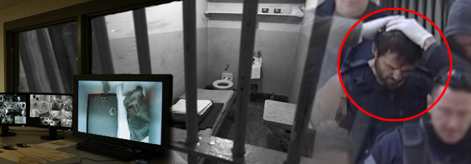 Τοποθετήθηκε σε θάλαμο νεοεισερχομένων στις 18.30 μόνος του και μακριά από άλλους κρατουμένους, ώστε να υπάρχει συνεχής παρακολούθησή του από το προσωπικό του σωφρονιστικού καταστήματος. Μάλιστα, εντός του χώρου κράτησής του τοποθετήθηκε κάμερα, ώστε να υπάρχει πλήρης εποπτεία και καταγραφή όλων των κινήσεων.