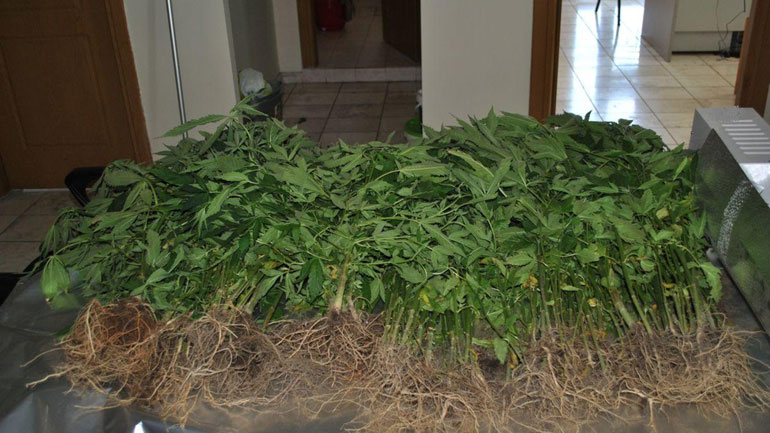 Ειδικότερα, έπειτα από κατάλληλη αξιοποίηση στοιχείων, οι αστυνομικοί εντόπισαν και προσήγαγαν τον 38χρονο, ενώ σε νομότυπη έρευνα που πραγματοποίησαν στο σπίτι του βρήκαν σε εσωτερικούς και εξωτερικούς χώρους (βεράντα, ταράτσα, αυλή) και κατέσχεσαν συνολικά: