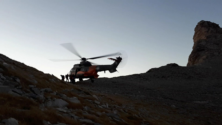 Η προσέγγιση του ελικοπτέρου στο σημείο του ατυχήματος ήταν ιδιαίτερα δύσκολη, καθώς οι αντικειμενικές δυσκολίες – όπως η μορφολογία του πεδίου και το μεγάλο υψόμετρο – δυσχέραιναν την επιχείρηση. Τελικά, κατάφερε να προσγειωθεί στις 19.10 και να παραλάβει τον ορειβάτη.