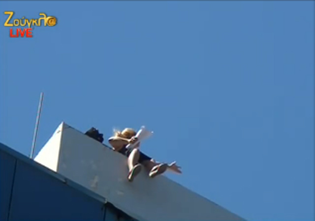 Τελικά, λίγο πριν από τις 15.00 το μεσημέρι, οι αστυνομικοί την πλησίασαν, όταν σηκώθηκε όρθια, και με μία αιφνιδιαστική κίνηση την άρπαξαν από το πόδι και την έσπρωξαν με ασφάλεια μακριά από το περβάζι.