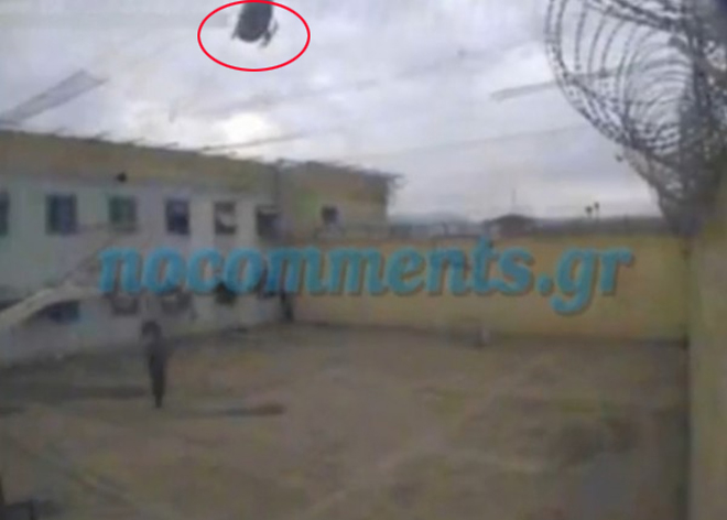 Στο βίντεο που δημοσιεύει το nocomments.gr φαίνεται καρέ-καρέ όλο το χρονικό της απόπειρας απόδρασης του βαρυποινίτη από το προαύλιο του σωφρονιστικού καταστήματος.