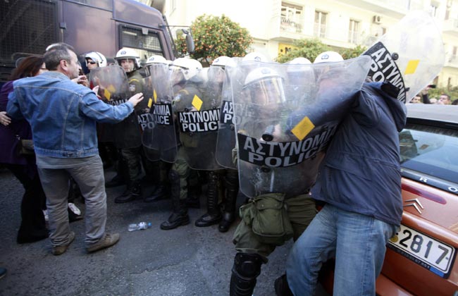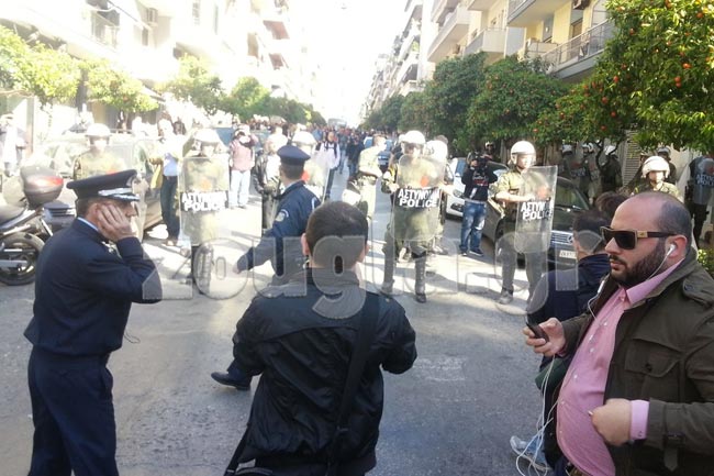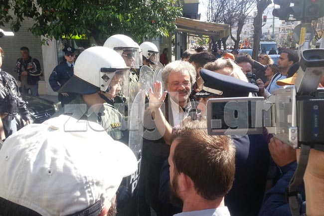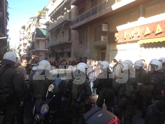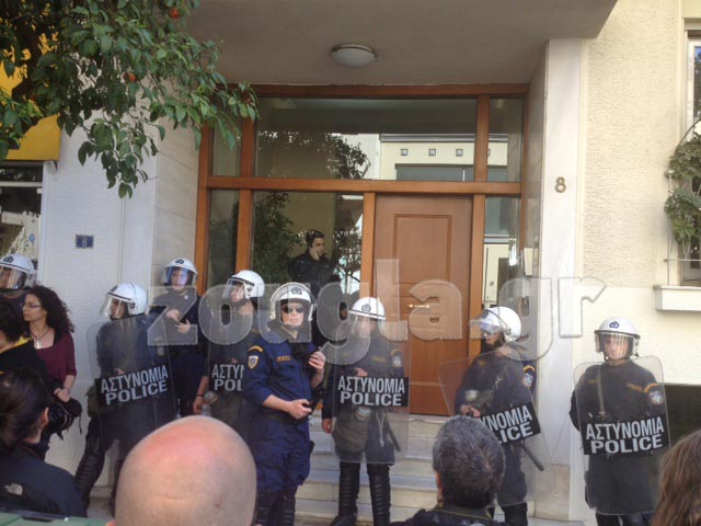 Λίγα λεπτά μετά τις 14.00 δύο διμοιρίες των ΜΑΤ, πραγματοποίησαν έφοδο στο κτήριο σε μία προσπάθεια να εκτονωθεί η κατάσταση. Αυτή την ώρα διαδηλωτές και ΜΑΤ παραμένουν εντός του πολιτικού γραφείου του υπουργού.