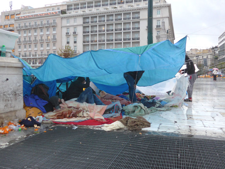Την ίδια στιγμή, προβλήματα προκαλεί η βροχή και στους Σύρους πρόσφυγες που παραμένουν στην πλατεία Συντάγματος.