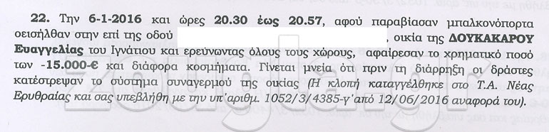 Σύμφωνα με το διαβιβαστικό, η δημοσιογράφος διαθέτει σπίτι στην Πολιτεία το οποίο μπήκε στο στόχαστρο των διαρρηκτών.