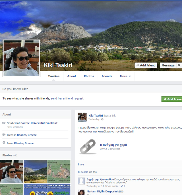 Ποια είναι, όμως, η Κική; Αντίθετα με όσα θα πίστευε κανείς, πρόκειται για μία γυναίκα δυναμική, καλλιεργημένη, αντισυμβατική, έναν άνθρωπο με άποψη, που είναι δραστήρια, παρά το γεγονός ότι είναι καθηλωμένη σε αναπηρικό κάθισμα.