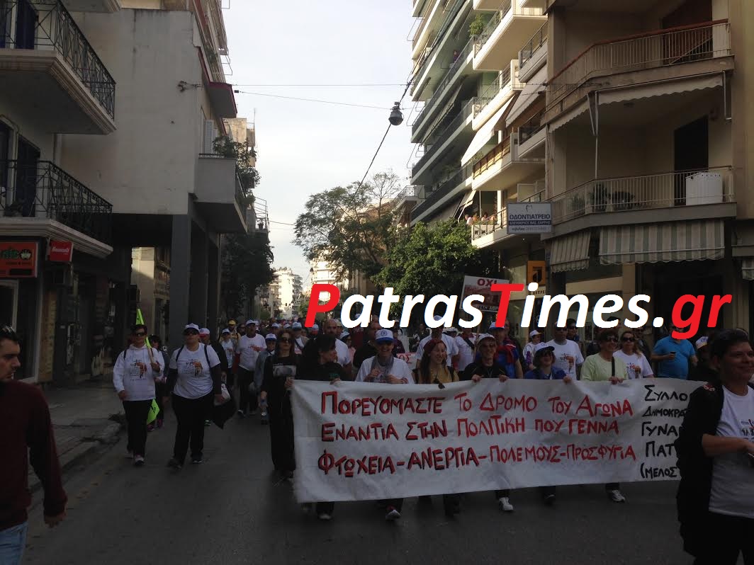 Επικεφαλής της πορείας, που ξεκίνησε από την πλατεία Γεωργίου, είναι ο δήμαρχος Πατρέων Κώστας Πελετίδης και συμμετέχουν αντιδήμαρχοι, επικεφαλής δημοτικών παρατάξεων, δημοτικοί σύμβουλοι, εκπρόσωποι φορέων, συλλόγων, σωματείων, καθώς και πολλοί πολίτες.
