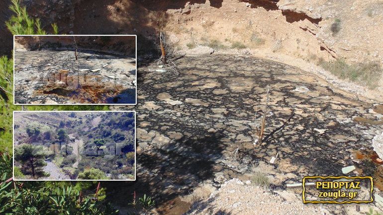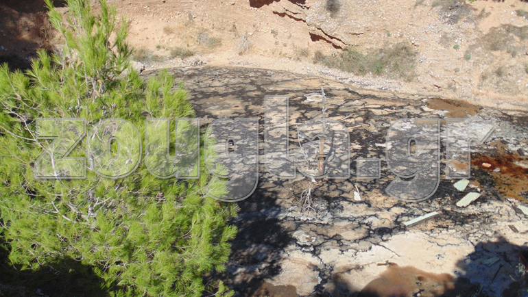 Τόνοι με τοξικά απόβλητα αδειάζονται από βυτιοφόρα με αποτέλεσμα στο σημείο να έχει δημιουργηθεί μια λίμνη μαύρου χρώματος με συμπαγή επιφάνεια. Η οσμή στο χώρο είναι αποπνικτική.