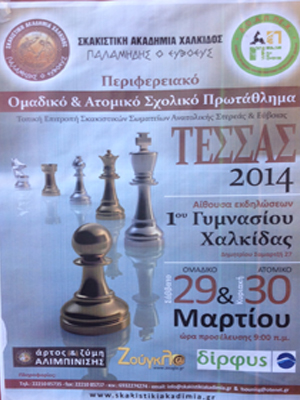 Για αυτό και οι μαθητές της Κεντρικής Ελλάδας που ασχολούνται με το σκάκι συμμετείχαν με μεγάλο ενθουσιασμό στο περιφερειακό πρωτάθλημα της Ανατολικής Στερεάς και Εύβοιας, που πραγματοποιήθηκε στο 1ο Γυμνάσιο Χαλκίδας, στις 29 και 30 Μαρτίου 2014, υπό τη διοργάνωση του Σκακιστικού Σωματείου «Σκακιστική Ακαδημία Χαλκίδας “Παλαμήδης ο Ευβοεύς”», σε συνεργασία με την Τ.Ε.Σ.Σ.Α.Σ.