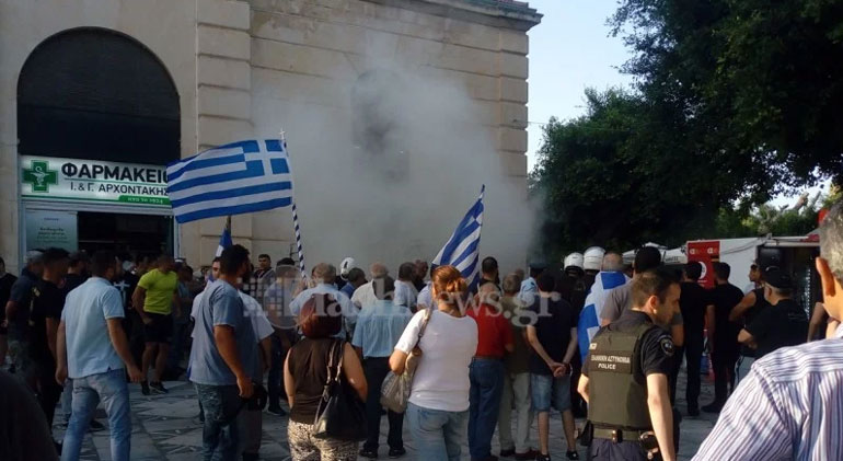 Ένταση και επεισόδια σημειώθηκαν το απόγευμα στην πλατεία της δημοτικής αγοράς των Χανίων λίγο πριν την έναρξη συγκέντρωσης για το «Μακεδονικό».