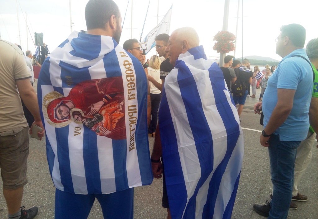 Η συγκέντρωση στη συνέχεια εξελίχθηκε ομαλά, με τους συγκεντρωμένους να κρατούν ελληνικές σημαίες, να τραγουδούν τον Εθνικό Ύμνο και να φωνάζουν συνθήματα για την ελληνικότητα της Μακεδονίας.